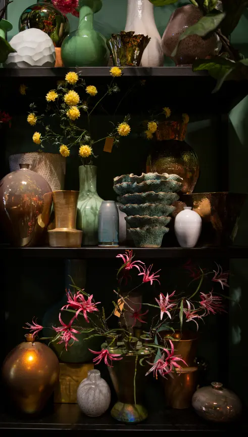 Onze boutique is tevens een showroom voor professionals zoals interieurarchitecten en stylisten, waar we samen unieke objecten creëren. Laat je inspireren en adviseren door onze gepassioneerde medewerkers, die graag hun kennis en expertise met je delen. Of het nu gaat om een opvallend statementstuk of juist subtiele accenten, wij helpen je graag bij het vinden van de perfecte keuzes die passen bij jouw stijl en interieur. Dit kan uiteraard met een eigen vaas